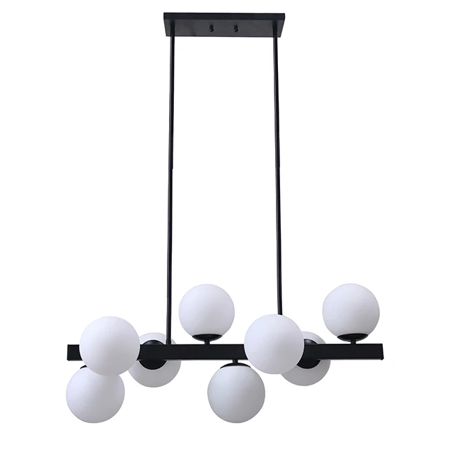 This pendant light from Project Source has a matte black metal structure completed by 8 opal glass spherical shades. It requires eight G9 40-watt light bulbs which are sold separately. This product comes with a limited 1-year warranty.