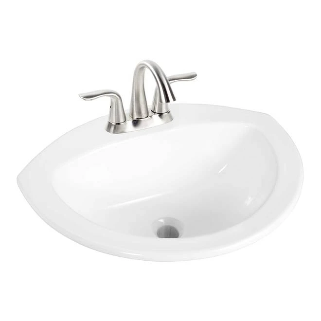 The Ladelle drop-in oval bathroom sink model from Project Source features a grade A vitreous porcelain design, 3 holes and front overflow. With a 4-in center distance, it gives an aesthetic dimension to a small bathroom counter.