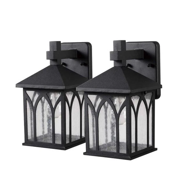 Featuring a black finish and clear hammered glass panels, these outdoor wall lanterns from Project Source will light up your home beautifully. The set of 2 wall lights requires type A, E26 60 W bulbs (sold separately).
