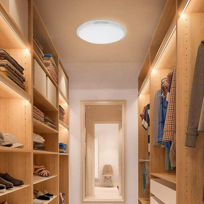Set of 2 circular flush mount ceiling lights from Project Source with a brushed nickel finish. The 12-in light fixtures have integrated LED lighting that lasts 30,000 hours and come with a 5-year warranty.