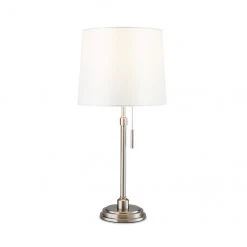 Project Source Table Lamps – Metal and Linen – 20-in – Brushed Nickel and White – Set of 2